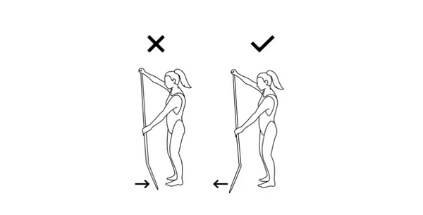 When holding the SUP oar, make sure the angle of the paddle is facing away from you.